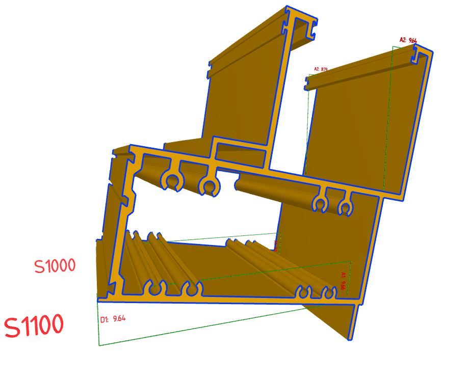 Model display sections @ each 100 mm curved distance